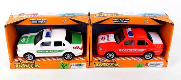 Современная полицейская машинка в ярком исполнении со световыми и звуковыми эффектами. Выполнена из пластмассы. В ассортименте. Коробка, 21х10х11,5 см.