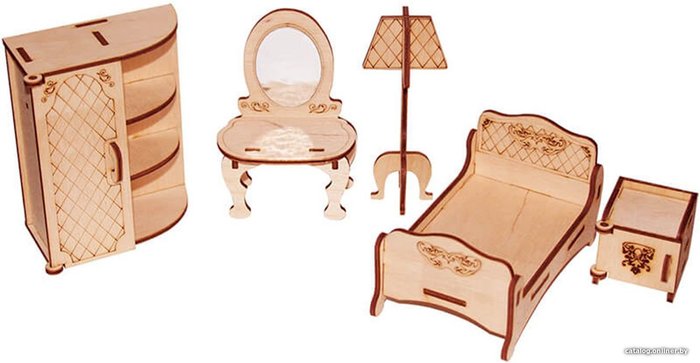 - Комплектация кровать, прикроватная тумбочка, торшер, шкаф, туалетный столик