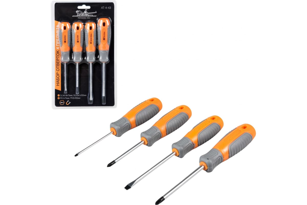 Набор отверток AIRLINE 4 предмета SL3*0.8*75мм,SL5.5*1*100мм,PH1*75мм, PH2*100мм блистер AT-4-43