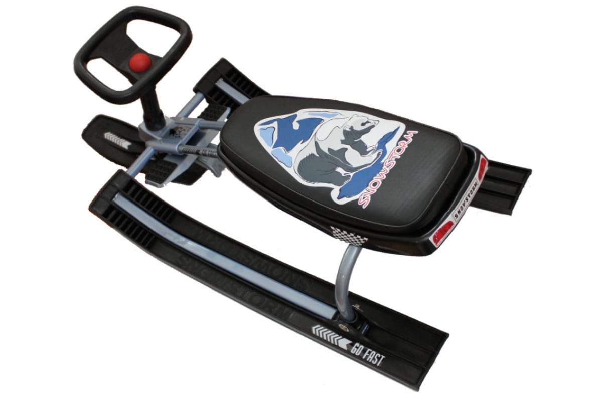 Снегокат Медведь, серо-голубой Snowstorm pro Х29831 служит для прогулок и катания с гор зимой. Рама изготовлена из стали, а морозостойкие лыжи из ударопрочного пластика, что делает конструкцию прочной и долговечной. Эргономичное сидение выполнено из искусственной кожи с наполнителем и с рисунком медведя. Руль с амортизатором позволяет менять направление движения и снижать вибрацию при езде по кочкам. Тормозные гребенки используется для регулировки скорости во время спуска.