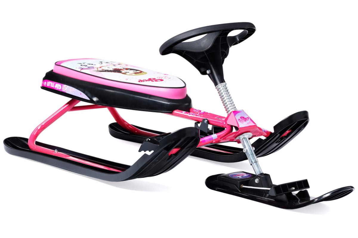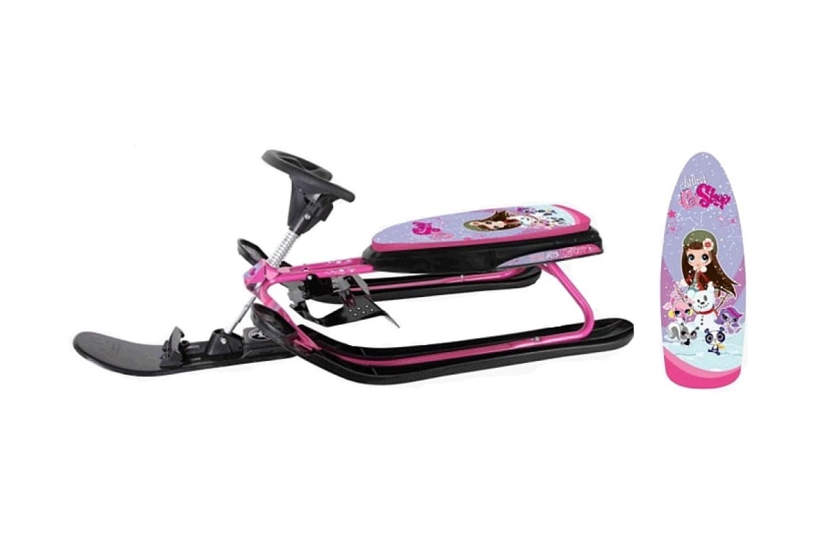 Снегокат Snowstorm pro LITTLE PET SHOP Х49173 станет отличным подарком для маленькой модницы. Рама выполнена из прочного металла и окрашена в розовый цвет. Рисунок "сноубордистка" нанесен методом шелкографии, что обеспечивает стойкость к истиранию. Передняя стойка оснащена пружинным амортизатором для сглаживания толчков при езде по ямам и кочкам. Карвинговая форма лыж обеспечивает лучшую маневренность. Ножной тормоз предназначен для остановки снегоката в экстренных ситуациях.