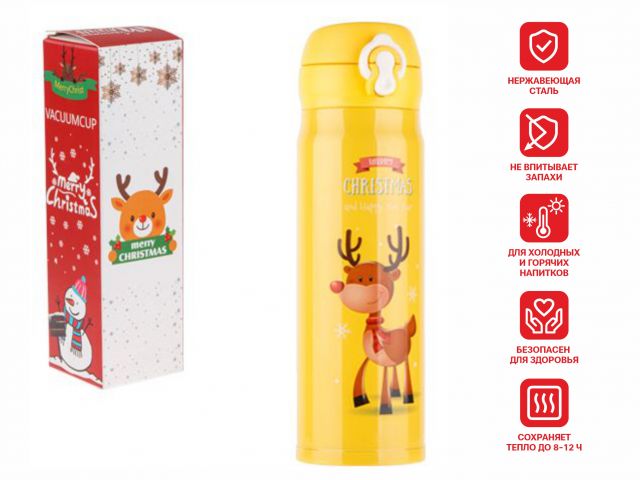 Термос, 500 мл, нержавеющая сталь, MERRY CHRISTMAS, желтый, PERFECTO LINEA 27-225470