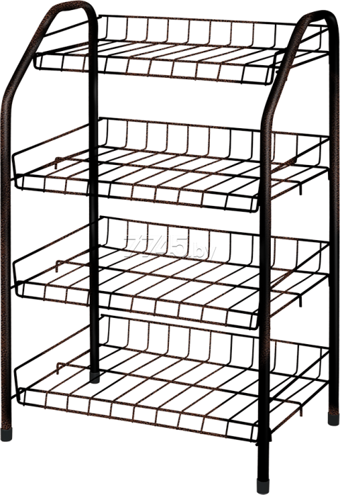 Полка для обуви NIKA медный антик (ЭТ2/А) с четырьмя полками для размещения обуви. Пластиковые колпачки на ножках защищают поверхность пола от царапин. Максимальная нагрузка: 20 кг.