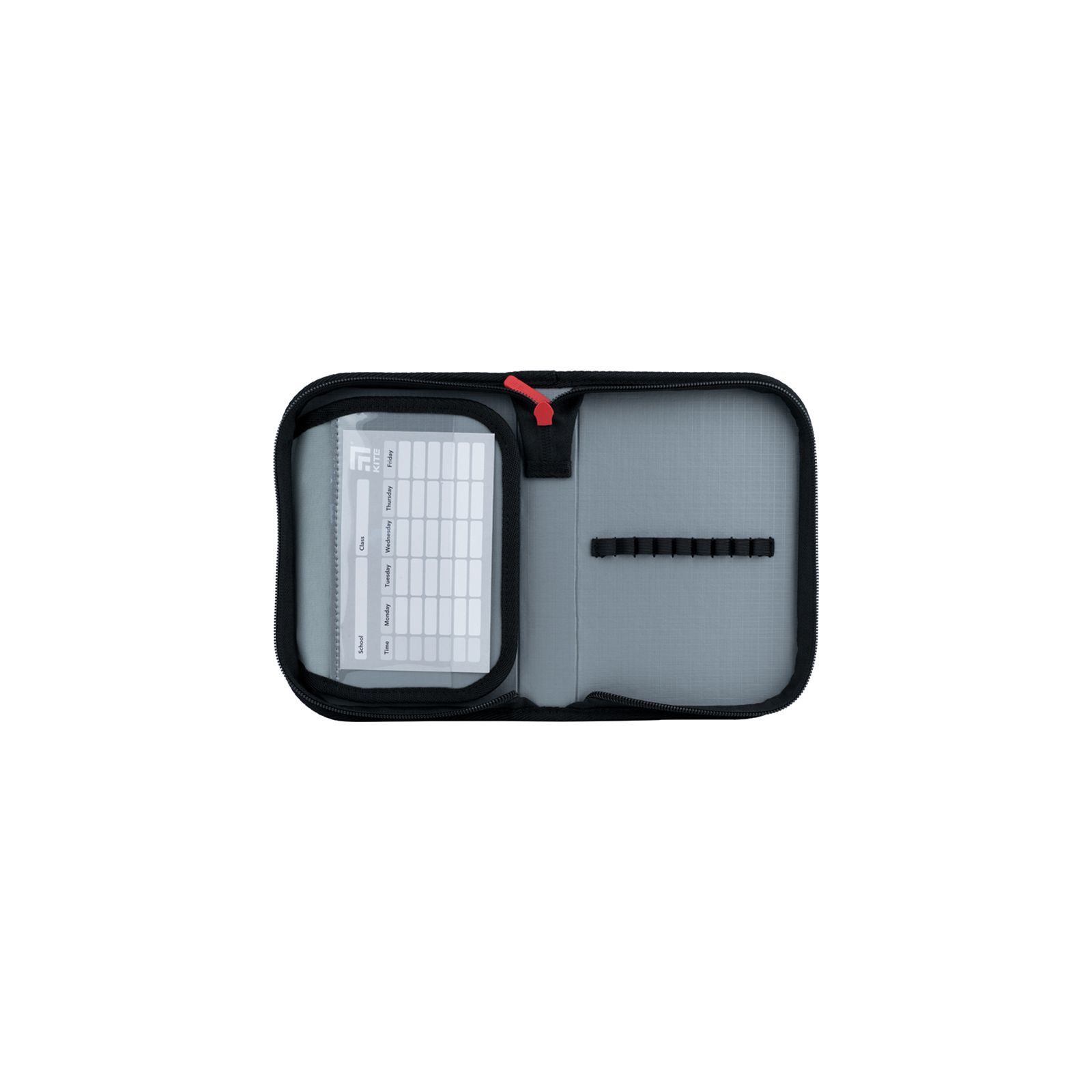 У пеналі легко підтримувати порядок. Ручки, олівці, фломастери, ножиці, гумка та точила: кожен предмет буде на своєму місці, акуратно закріплений еластичною тасьмою.