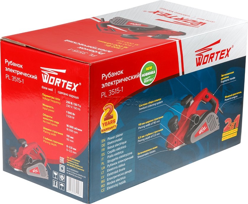 Электрорубанок WORTEX PL 3515-1 (PL3515100021) — простой и надежный инструмент, который прекрасно строгает и выравнивает поверхности. Высокое качество обработки достигается благодаря мощному двигателю. Отличительной характеристикой данного инструмента является большая глубина и ширина строгания. Рубанок возможно использовать в качестве станка, осуществлять выборку четверти (0–14 мм). Толщина станины (стенда) составляет 1,8 мм.