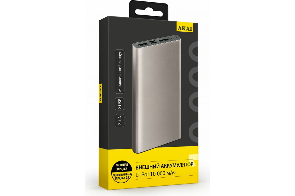 Внешний аккумулятор AKAI BE-10003, 10 000 maH, серый BE-10003 серый