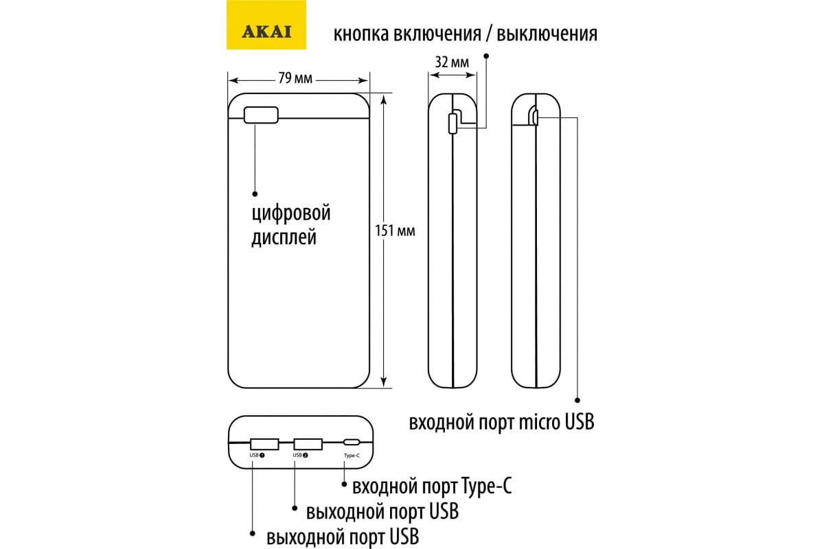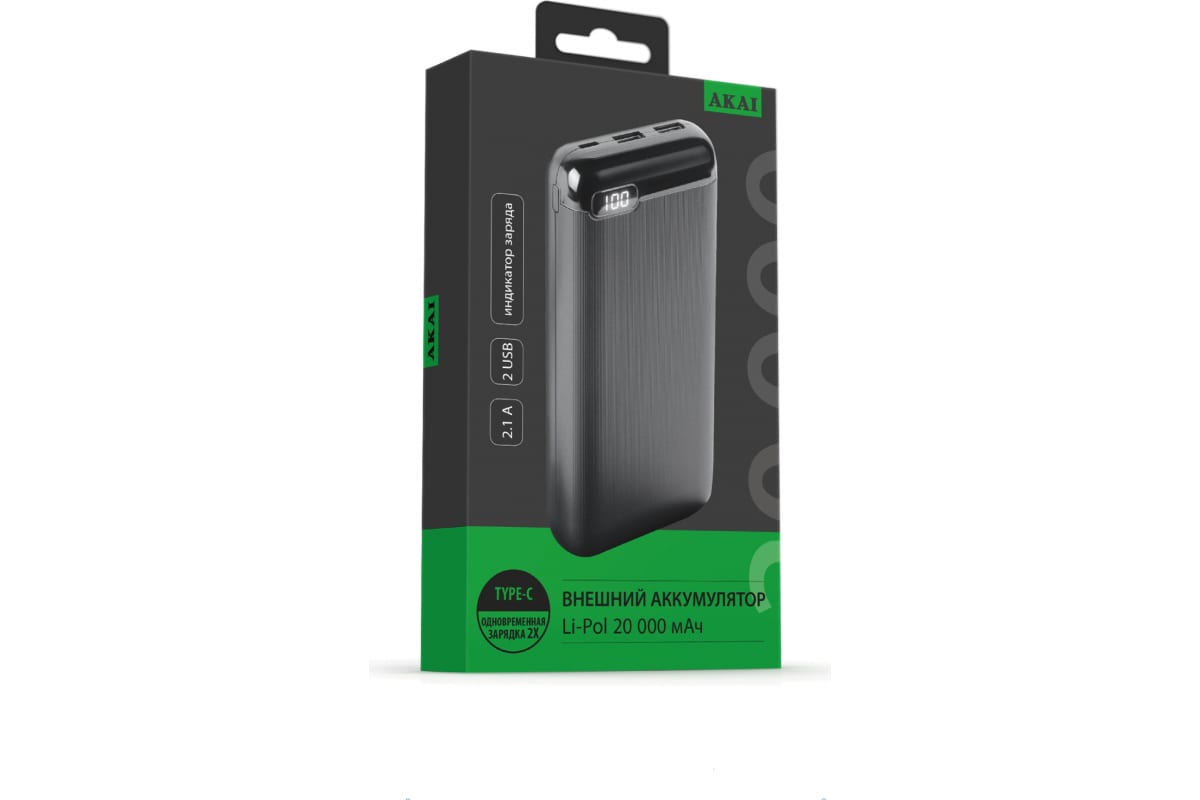Внешний аккумулятор AKAI BE-20002, 20 000 mAh, черный BE-20002 черный