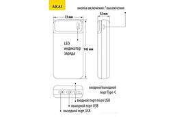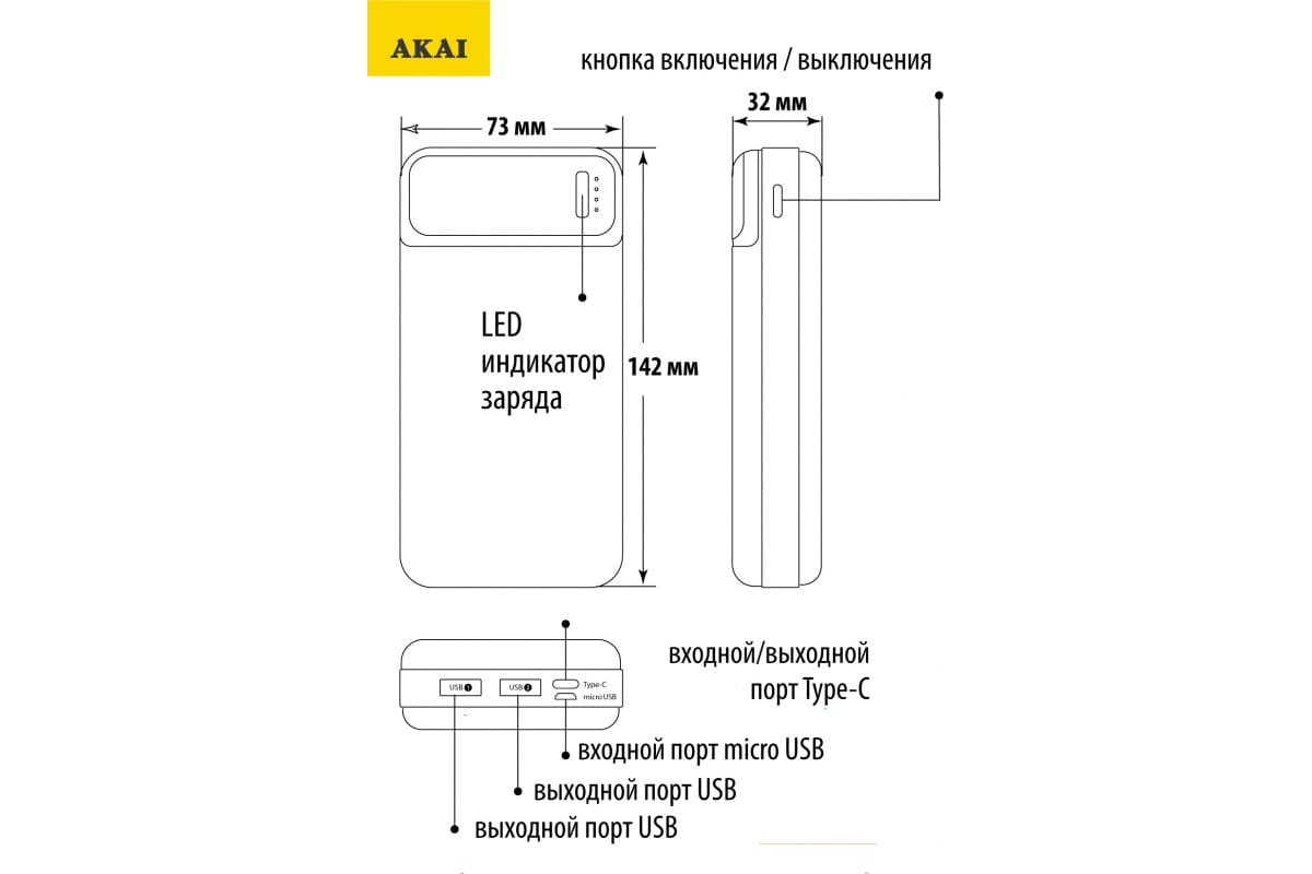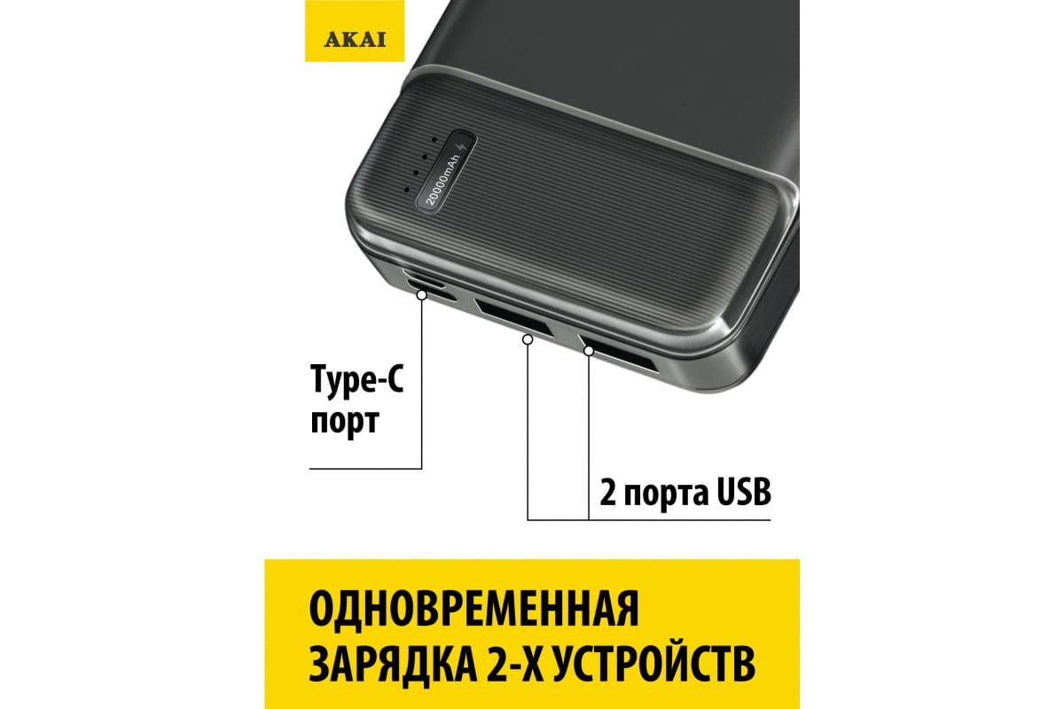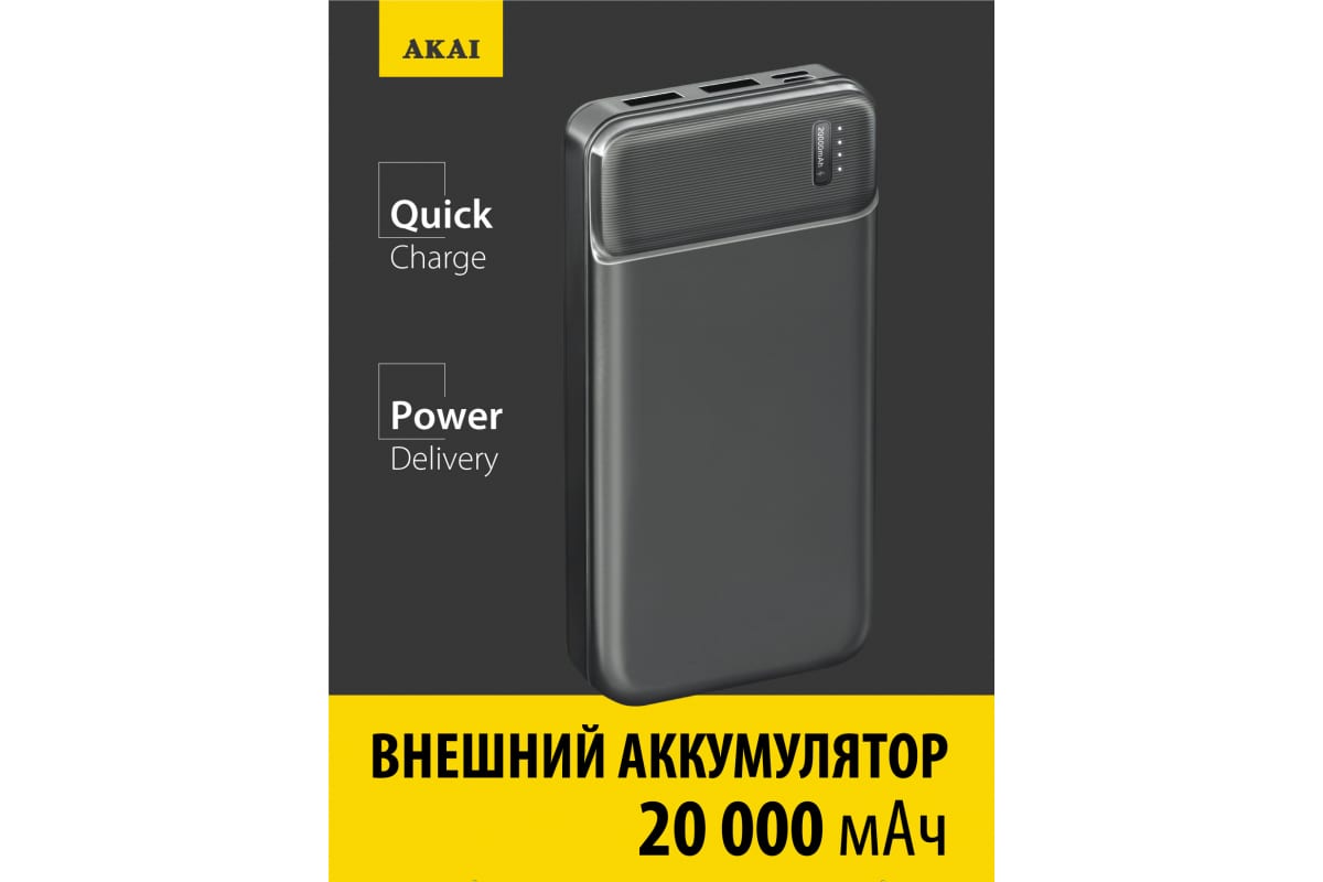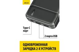 Внешний аккумулятор AKAI BE-20007 PD, 20 000 maH, черный BE-20007 PD черный