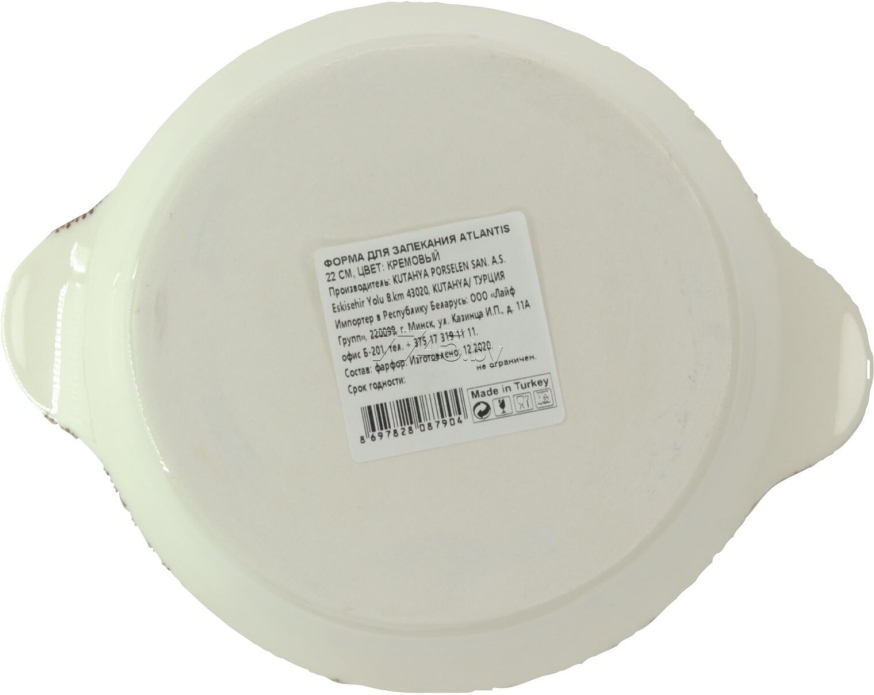 Форма для выпечки керамическая круглая 22,5 см KUTAHYA Atlantis кремовый с кантом (8697828087904)