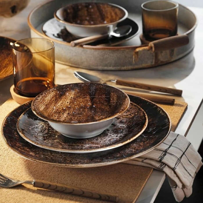 Тарелка фарфоровая для пасты KUTAHYA Moon коричневый (8697828084835)