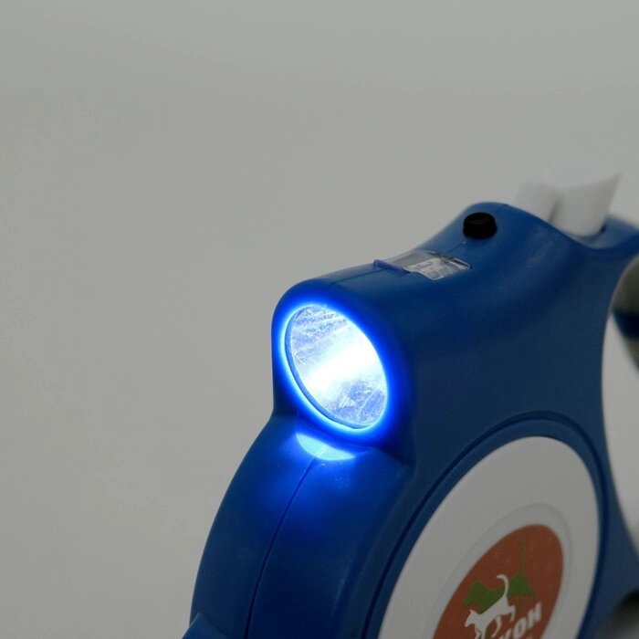 Рулетка "Пижон" с фонариком, прорезиненная ручка, 5 м, до 35 кг, голубая