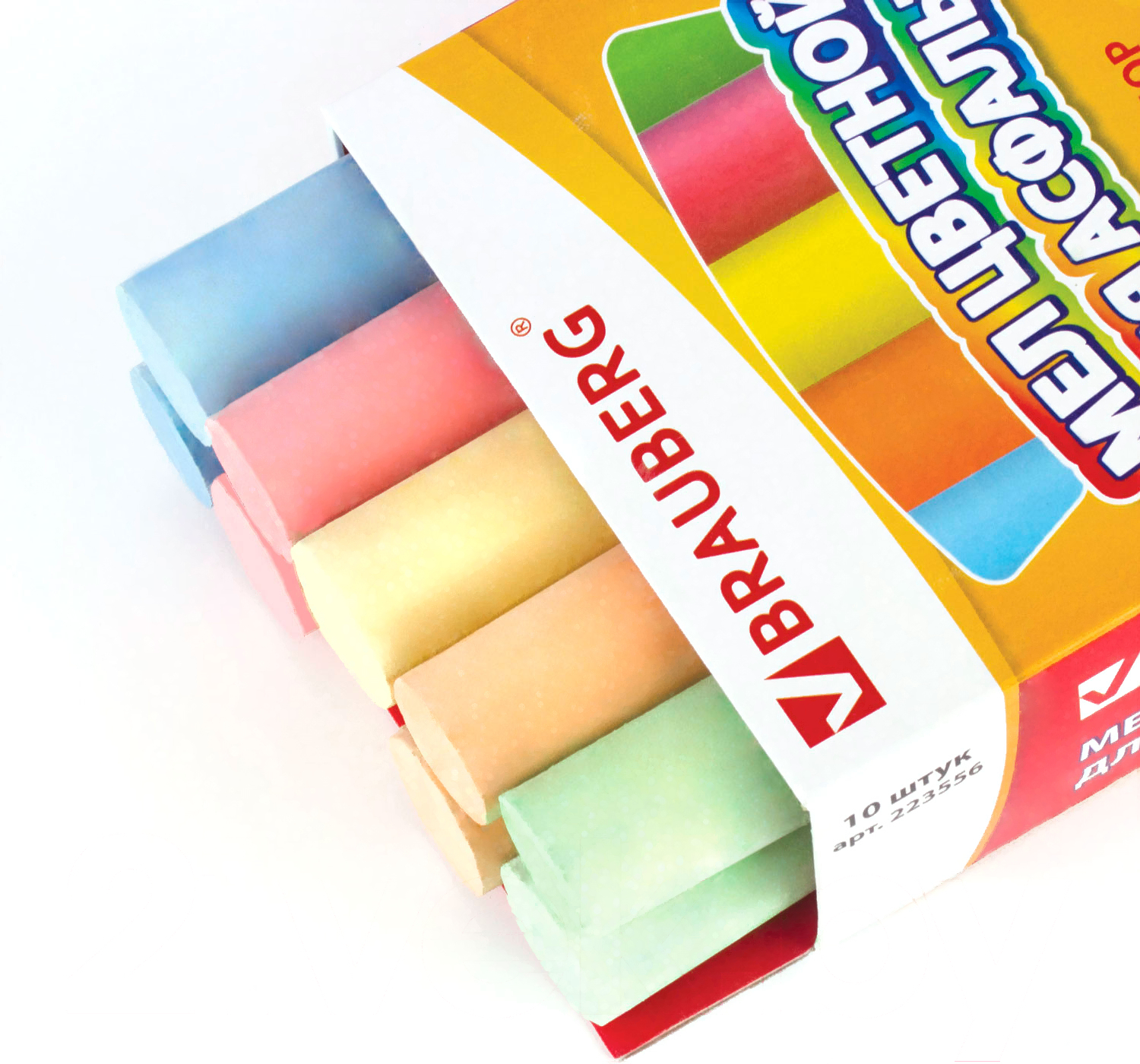 Набор мела канцелярского Brauberg 223556 (10шт, цветной)