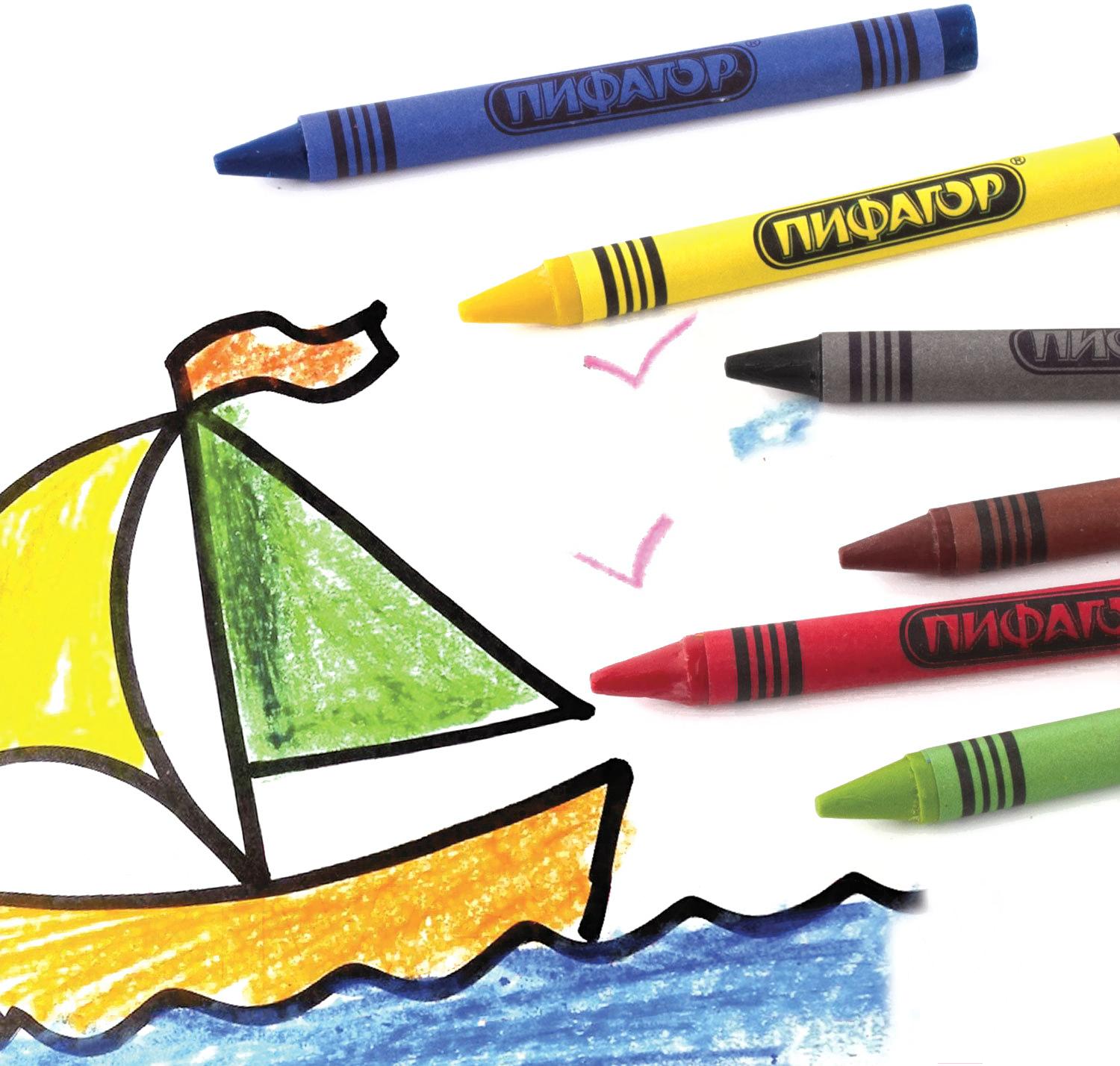 Восковые мелки Пифагор Солнышко / 227278 (6цв)