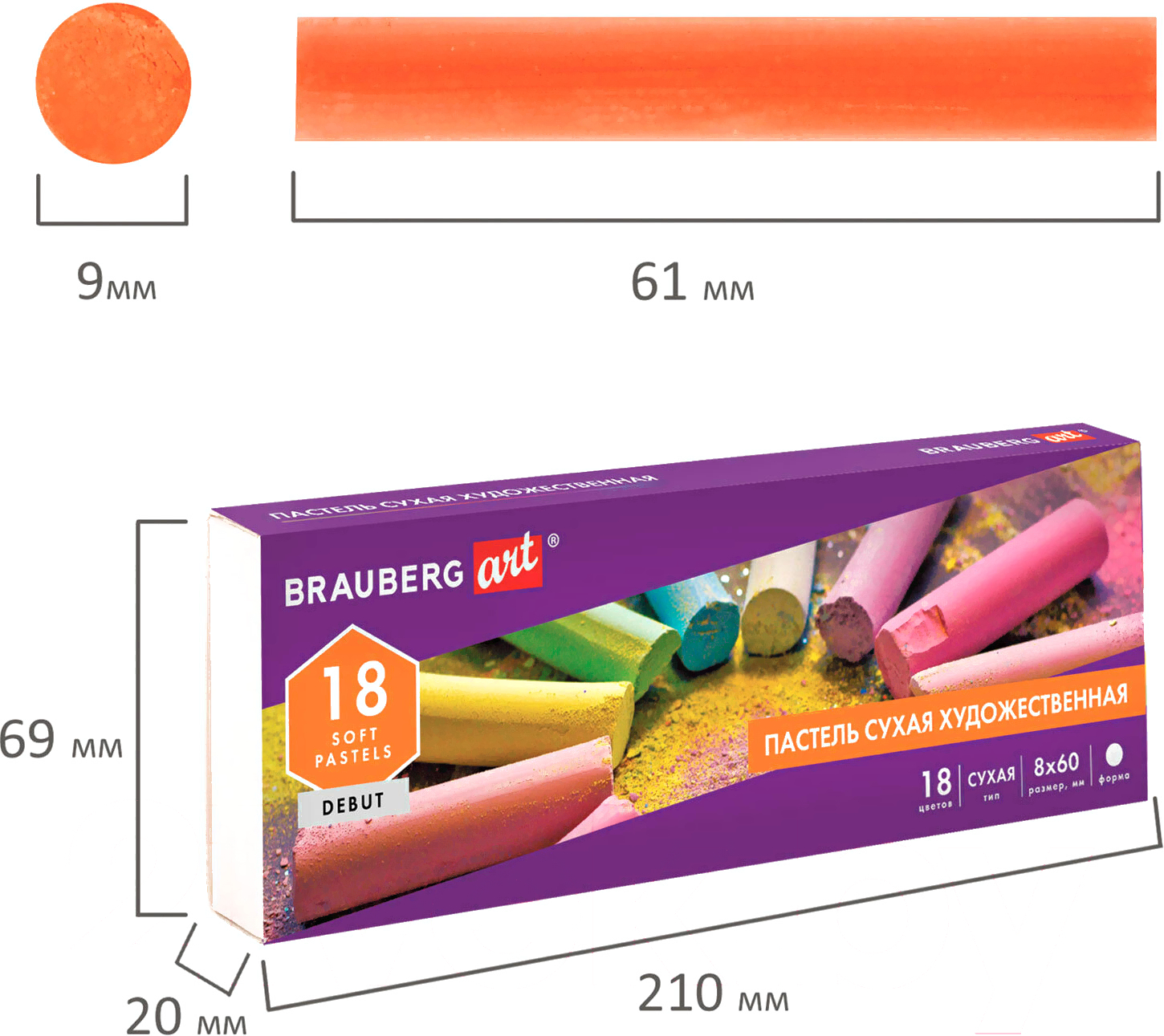 Набор сухой пастели Brauberg Art Debut / 181460 (18цв)