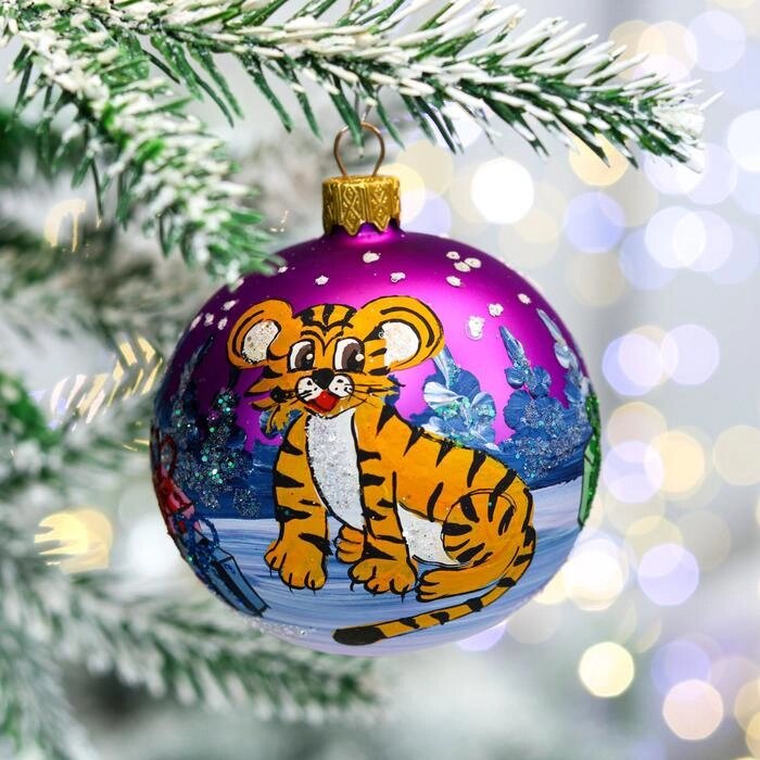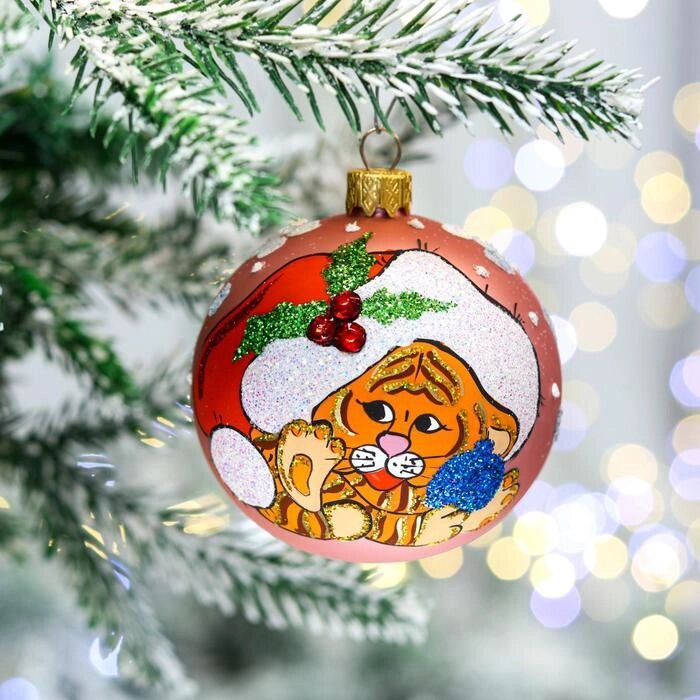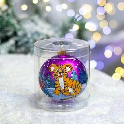 Ёлочная игрушка, символ года 2022, "Шар с тигром", 80 мм, стекло, в тубусе, микс