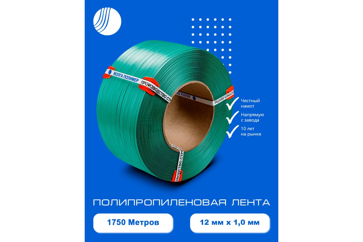 Полипропиленовая лента ВОЛГА ПОЛИМЕР 12x0,8 зеленая, 1750 м 12-10-1750-103-06