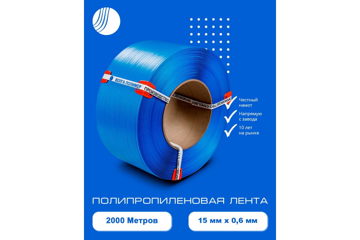 Полипропиленовая лента ВОЛГА ПОЛИМЕР 15x0,6 синяя, 2000 м 15-06-2000-107-08 является одним из самых современных упаковочных материалов. Стреппинг лента устойчива к погодным условиям и нагрузкам, не подвержена выцветанию.