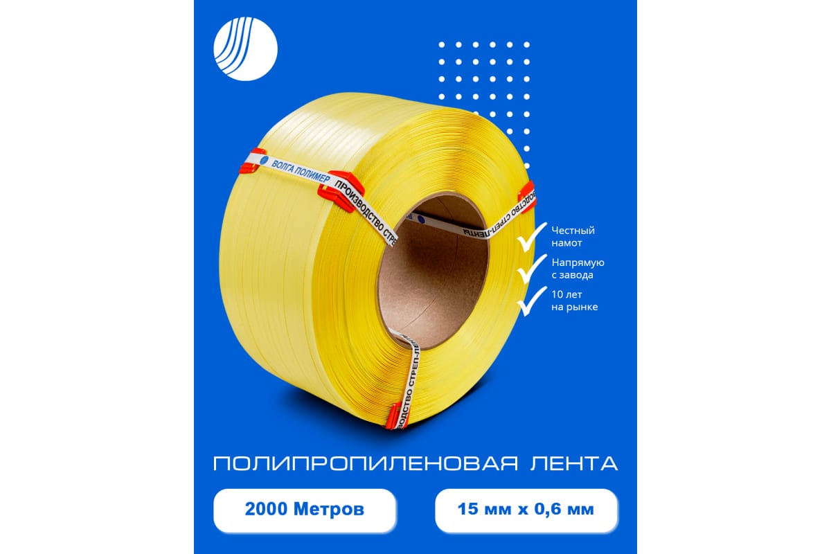 Полипропиленовая лента ВОЛГА ПОЛИМЕР 15x0,6 желтая, 2000 м 15-06-2000-107-05 является одним из самых современных упаковочных материалов. Стреппинг лента устойчива к погодным условиям и нагрузкам, не подвержена выцветанию.