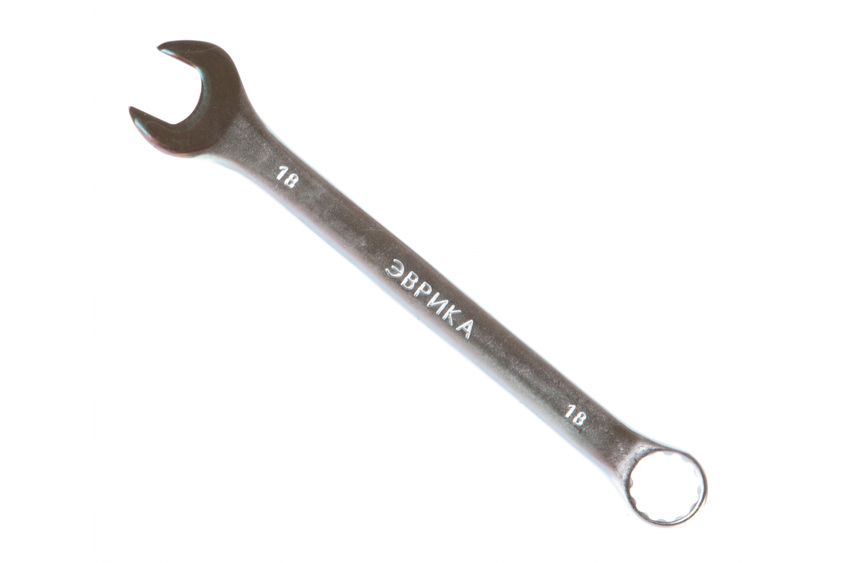 Комбинированный ключ 18мм на держателе сатинированный ЭВРИКА ER-31018 позволяет работать с крепежом с торца или сбоку.