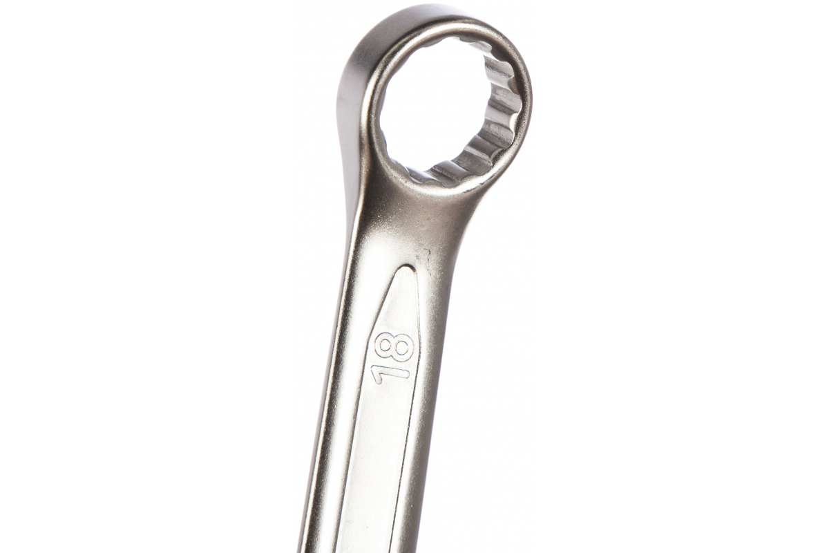 Комбинированный ключ 18мм Chrome vanadium на держателе ЭВРИКА ER-53181 позволяет работать с крепежом с торца или сбоку.