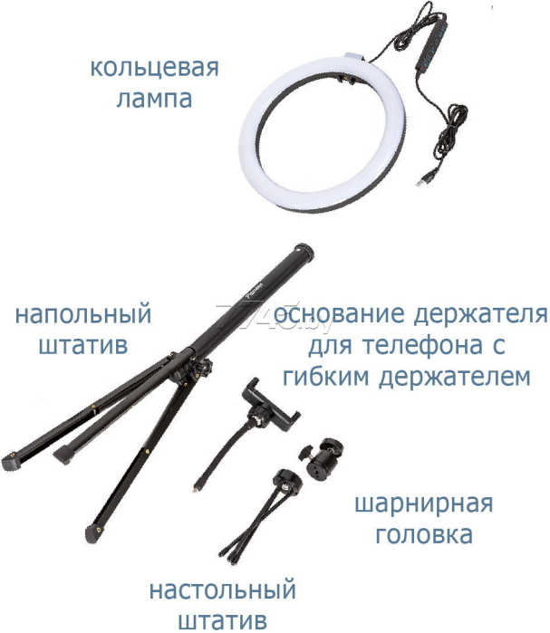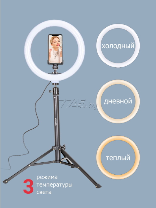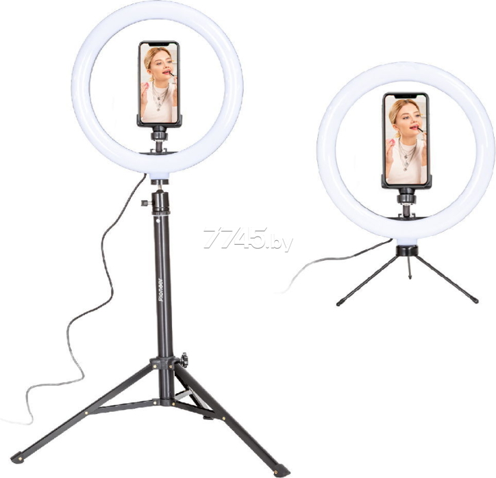 Кольцевая лампа PIONEER SL-10510 – это лампа, которая служит основным или дополнительным источником освещения, равномерно рассеивает свет и призвана скрыть блики, лишние тени и изъяны при при фото- или видеосъемке, потоковой видеотрансляции, при съемке селфи, видео блогов, видеозаписей, или макросъемки и т. д. Осветитель Pioneer поможет добиться правильного, яркого, равномерного освещения при любой съемке. Кольцевая светодиодная лампа Pioneer может использоваться также в качестве источника света для макияжа или маникюра, в качестве настольной лампы, торшера или ночника. Расположение источника света вокруг смартфона помогает добиться правильного, яркого, равномерного освещения при съемке и минимизирует тени. Лампа питается от стандартного порта USB. Ей не требуется встроенной батареи или специализированного адаптера питания. Она будет одинаково хорошо работать с большинством устройств, имеющих порт USB, таких как ноутбук, ПК, POWERBANK, зарядное устройство USB и т. д. Яркость светодиодного источника света регулируется в широких пределах. Три режима цветовой температуры – теплый белый свет, дневной (естественный) свет и холодный белый свет – позволяют добиться необходимых вам визуальных эффектов и обеспечивают совместимость со светочувствительными материалами с разной спектральной чувствительностью. Гибкий держатель для смартфона и держатель лампы с шарнирной головкой дают свободу в выборе ракурса съемки. Входящий в комплект настольный штатив позволяет устанавливать лампу на столе или других горизонтальных поверхностях.