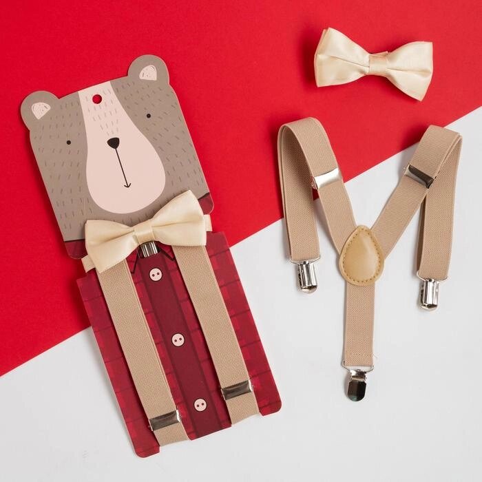Набор детский KAFTAN "Медведь" подтяжки и галстук-бабочка, р-р 75 см, п/э