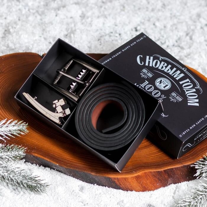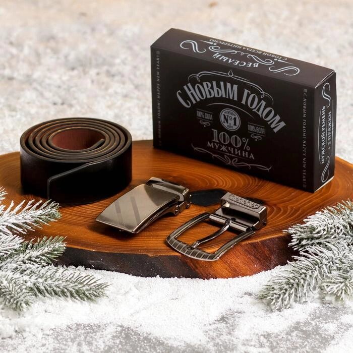 Мужской ремень со сменной пряжкой "100% мужик"