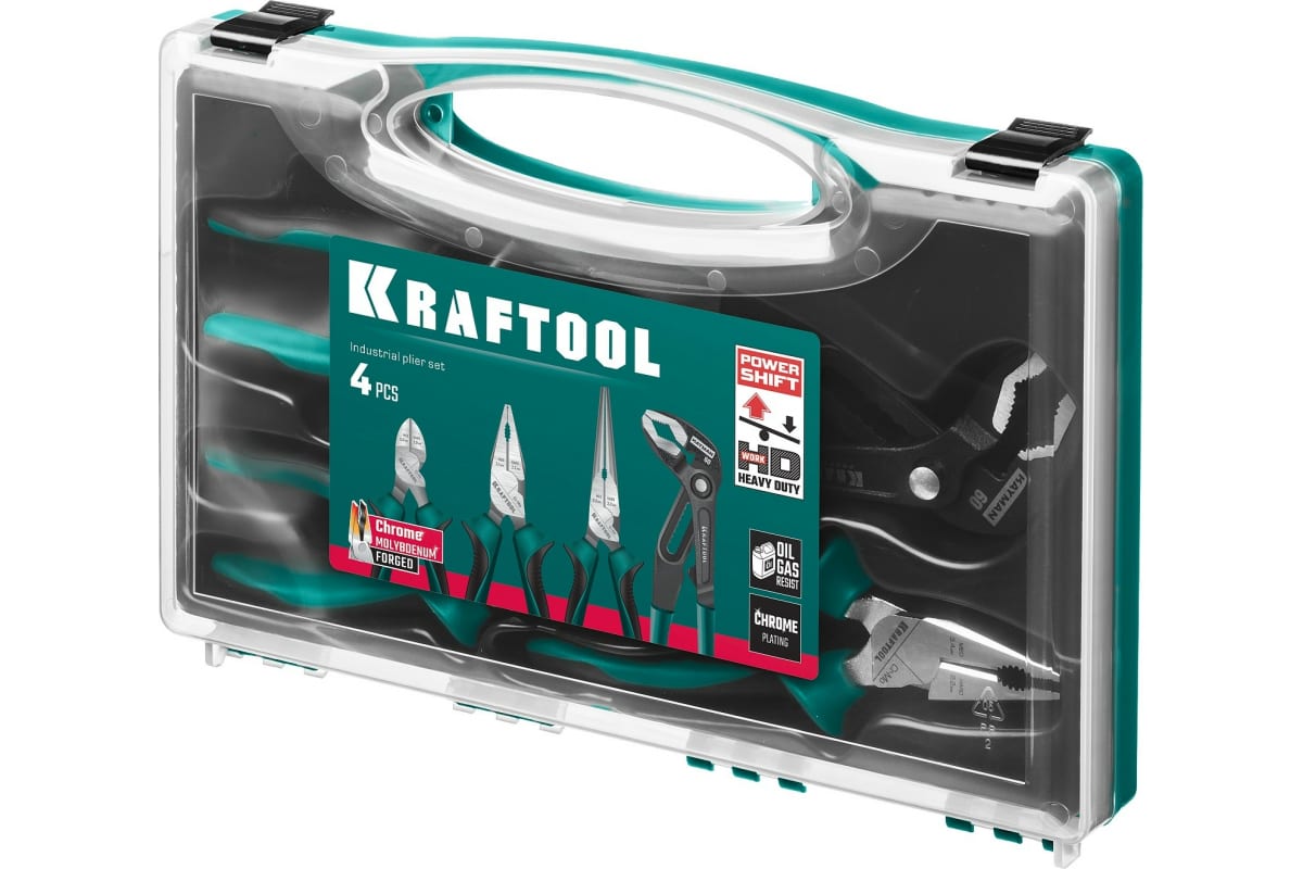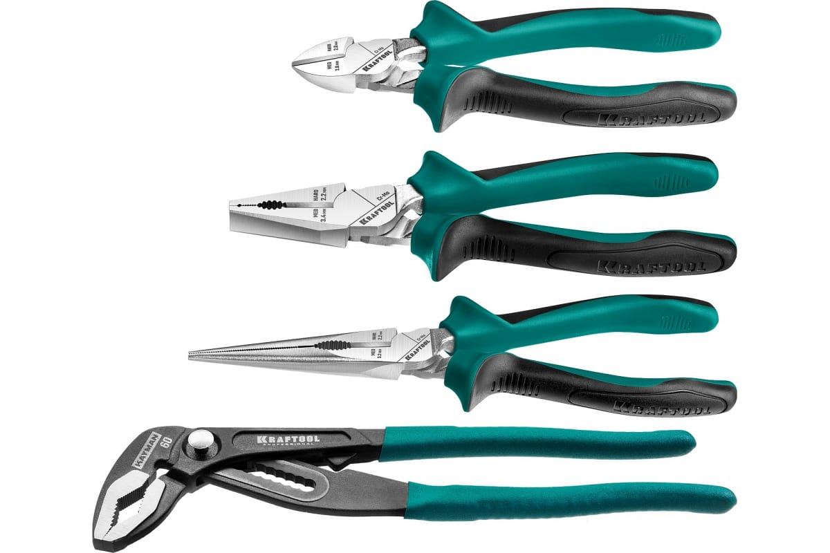 Набор губцевого инструмента KRAFTOOL 4 шт 22012 - это профессиональный набор инструмента для слесарных и монтажных работ.