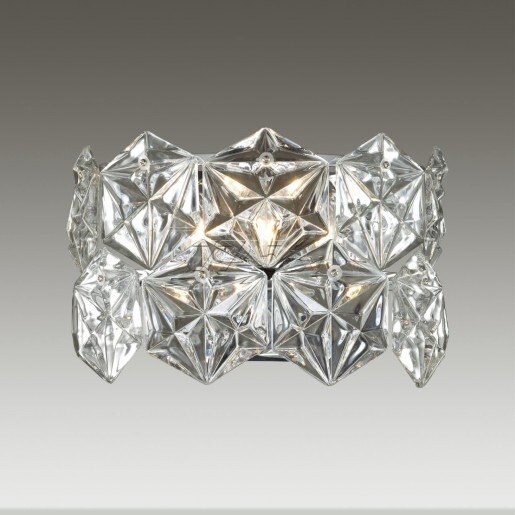 Бра настенное ODEON LIGHT 4923/2W Modern ODL22 325 хром - это великолепие точеных граней стекла, которое используется в абажуре в виде многоугольных фигур. Грани, переливаясь, обеспечивают игру мерцающего света. Основание выполнено в цвете хром.