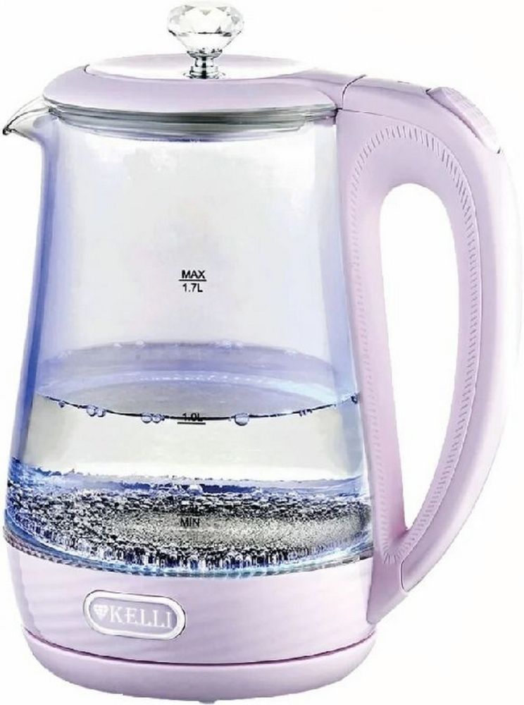 Электрический чайник, мощность 2200 Вт, объем 1.7 л, материал корпуса пластик/стекло, нагревательный элемент закрытая спираль, дополнительные функции: индикация включения, подсветка воды, подставка с вращением на 360°.