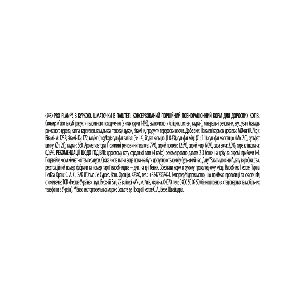 Паштет для котів Purina Pro Plan Adult Курка 85 г (3222270776431)