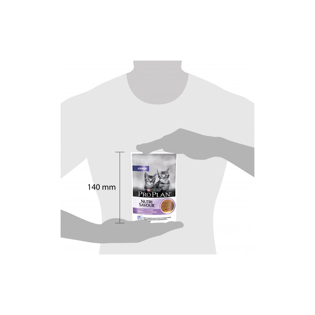 Purina Pro Plan Junior Nutrisavour — корм для кошенят, який об'єднує всі необхідні поживні речовини, включно з вітаміни D і Е, а також докозагексаєнову кислоту. Сприяє підтримці розвитку мозку та зору завдяки вмісту докозагексаєнової кислоти. Сприяє здоровому росту кісток і м'язів завдяки високому вмісту білка, а також правильному балансу поживних речовин, як-от кальцій і вітамін D.