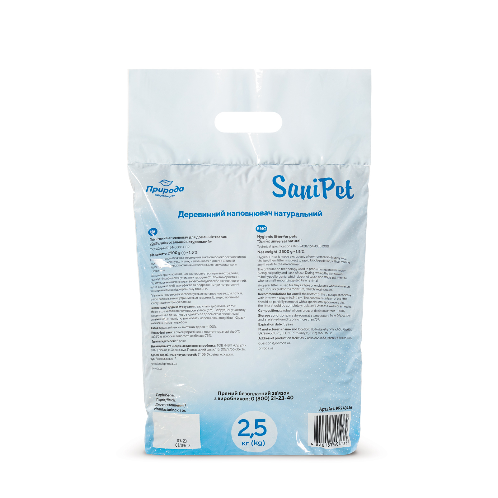 Наповнювач для туалету Природа Sani Pet універсальний деревний (натуральний) 2.5 кг (4820157404164)