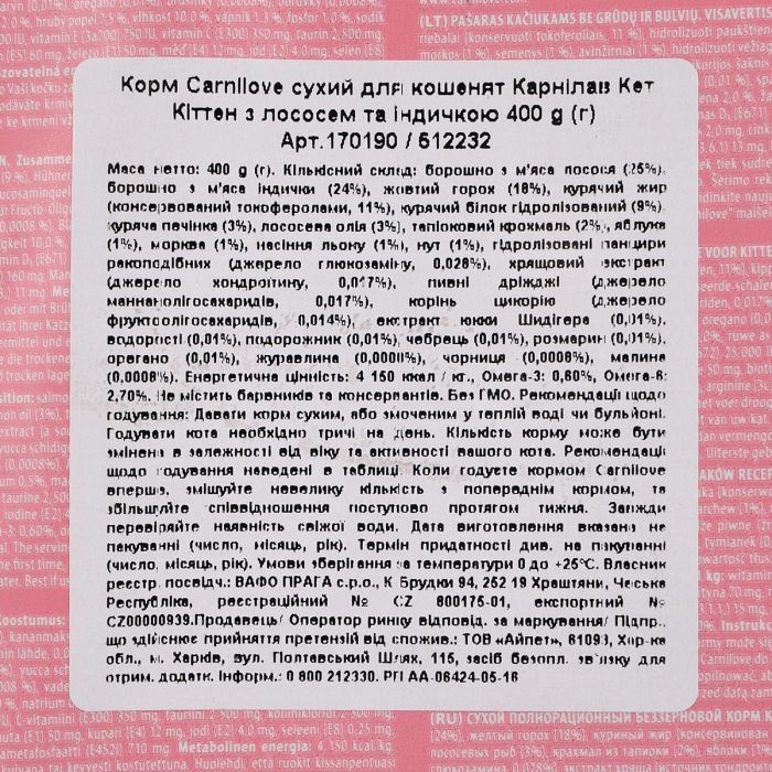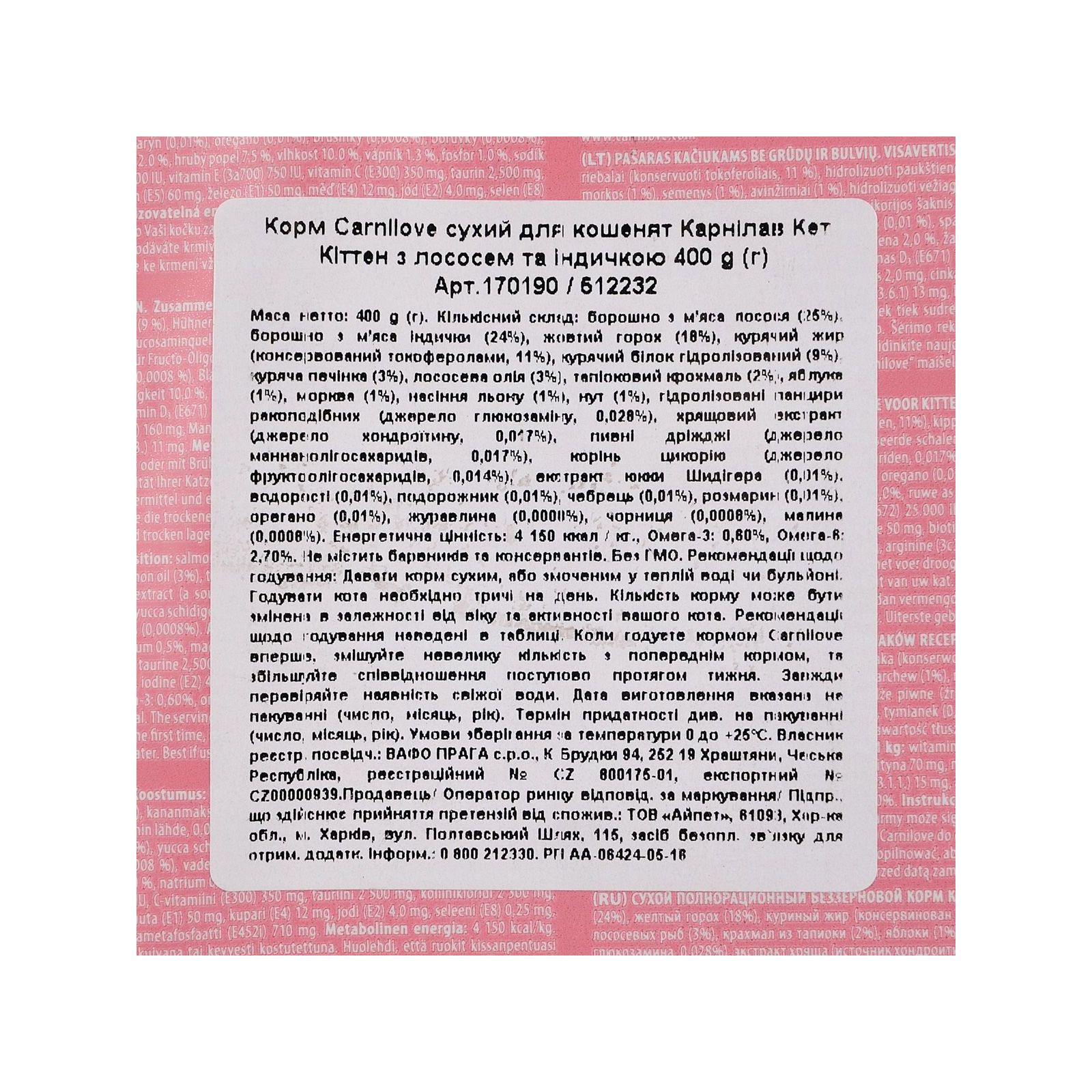 Сухий корм для кішок Carnilove Cat Kitten 400 г (8595602512232)