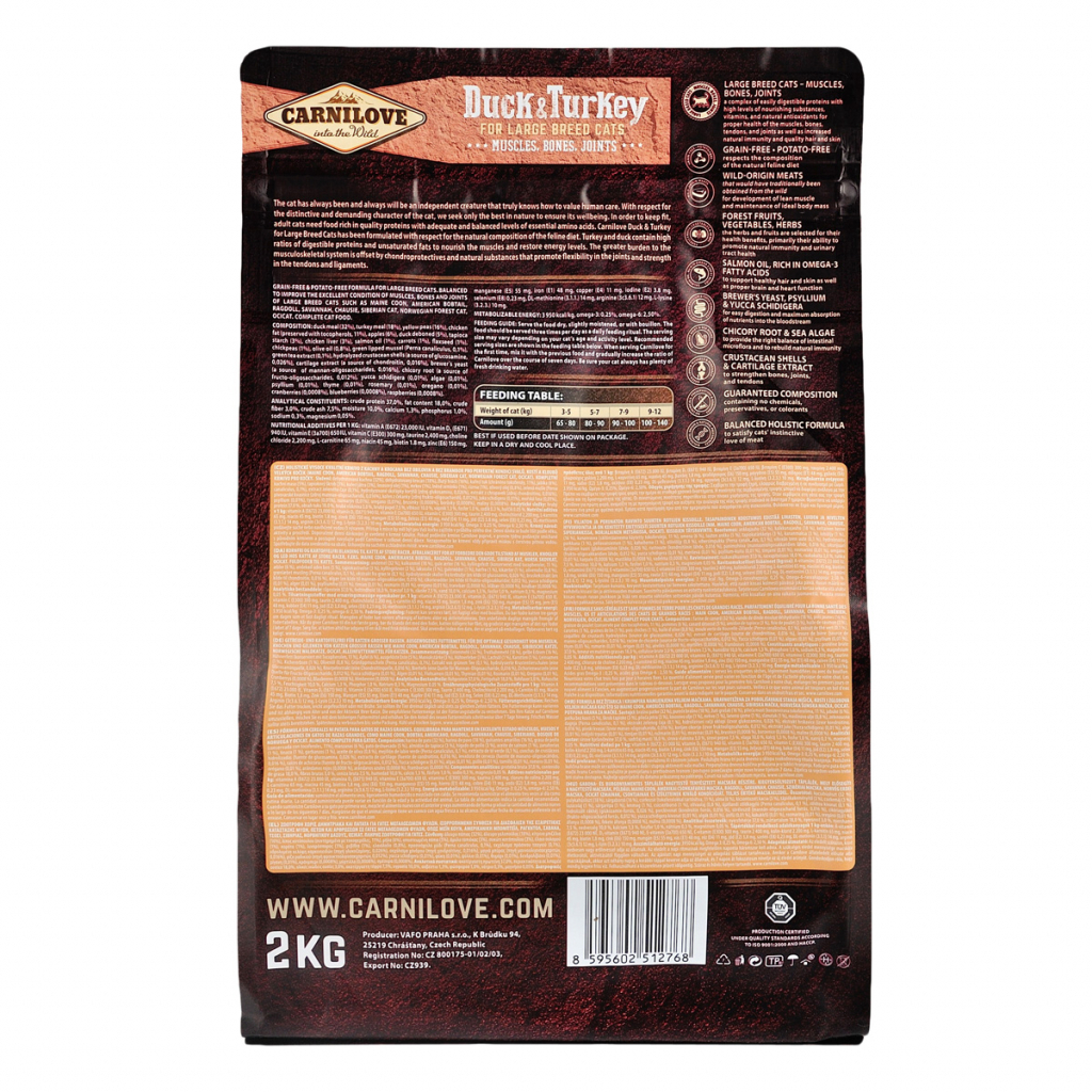 Carnilove Cat Duck&Turkey Large — повнораціонний збалансований беззерновий сухий корм класу холістик для дорослих кішок великих порід.