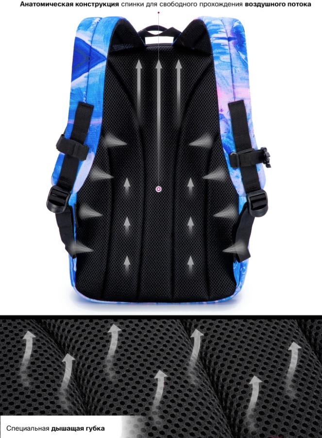• Особенности конструкции анатомические лямки, ортопедическая спинка, вентилируемая спинка