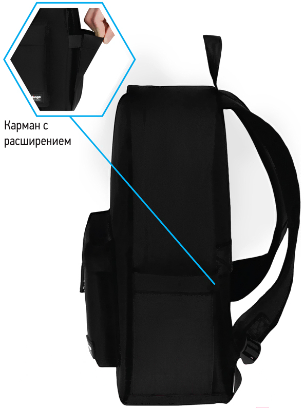 • Внешние элементы карман фронтальный, карман боковой (2 шт.), крепление для чемодана, крепление для очков