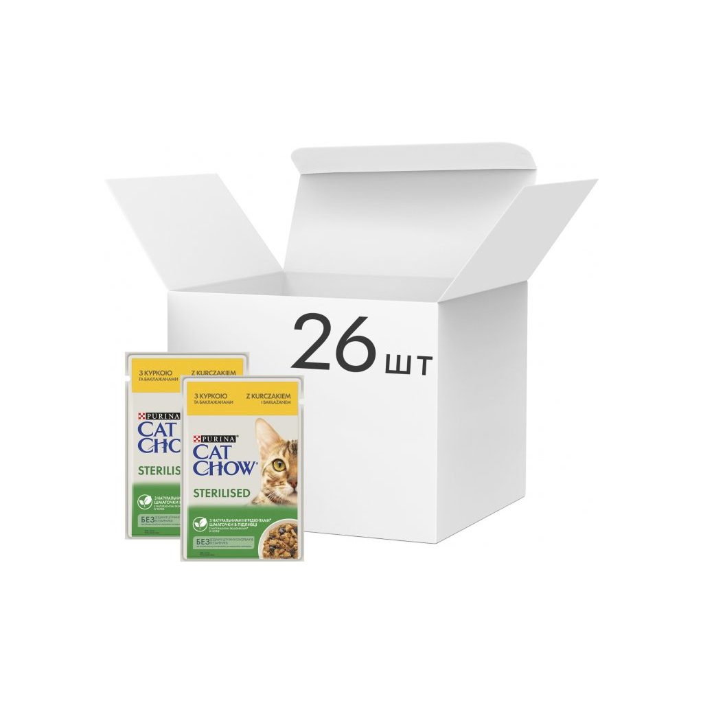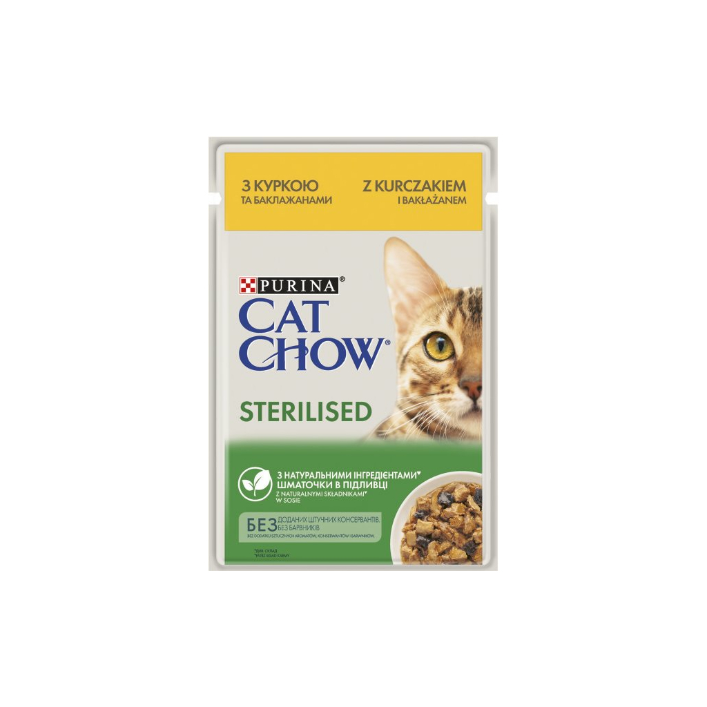 Вологий корм для кішок Purina Cat Chow Sterilised з куркою та баклажанами в желе 85г (7613037025644)