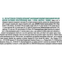 Склад: м'ясо та субпродукти тваринного походження (з яких курки 4%), екстракти рослинного протеїну, риба та продукти переробки риби, продукти переробки овочів, мінеральні речовини, рослинні олії та тваринні жири, цукри.