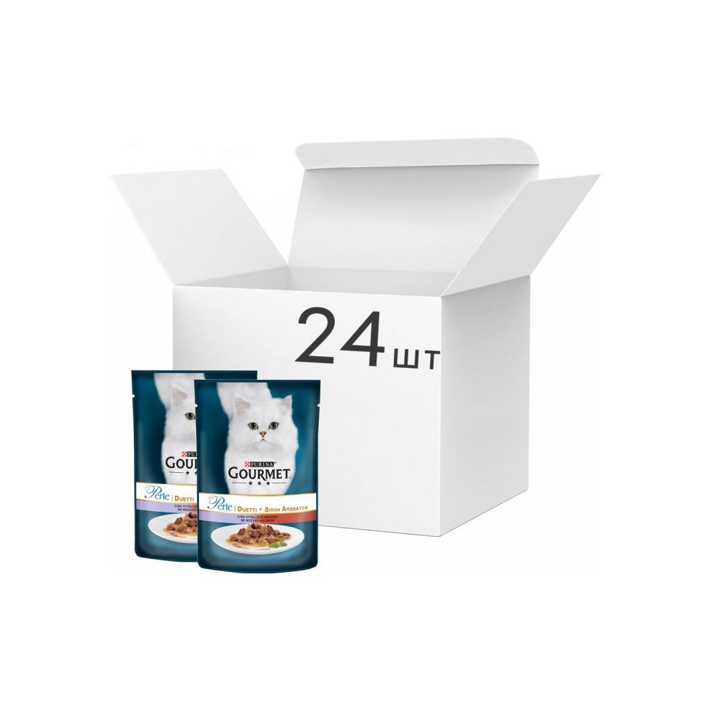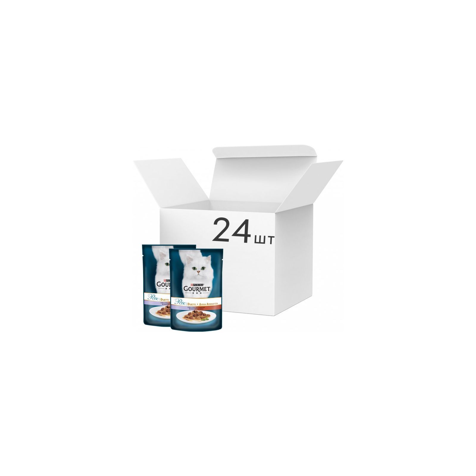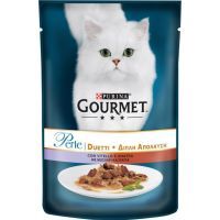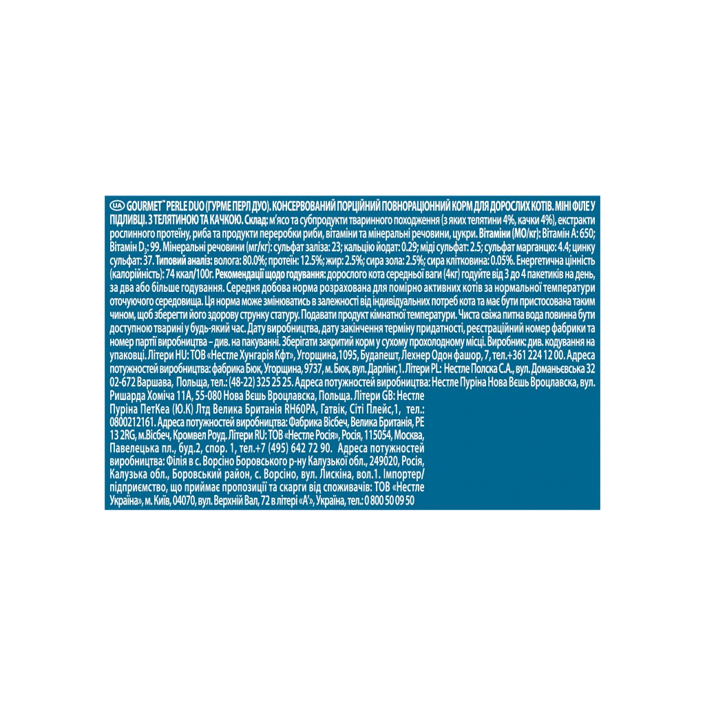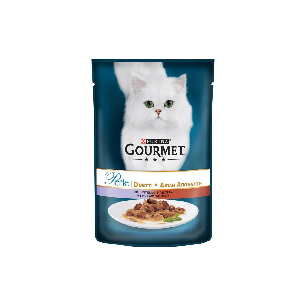Вологий корм для кішок Purina Gourmet Perle Duo. З телятиною і качкою в підливі 85г (7613033580024)