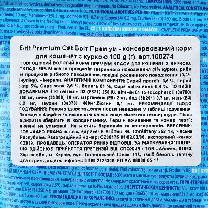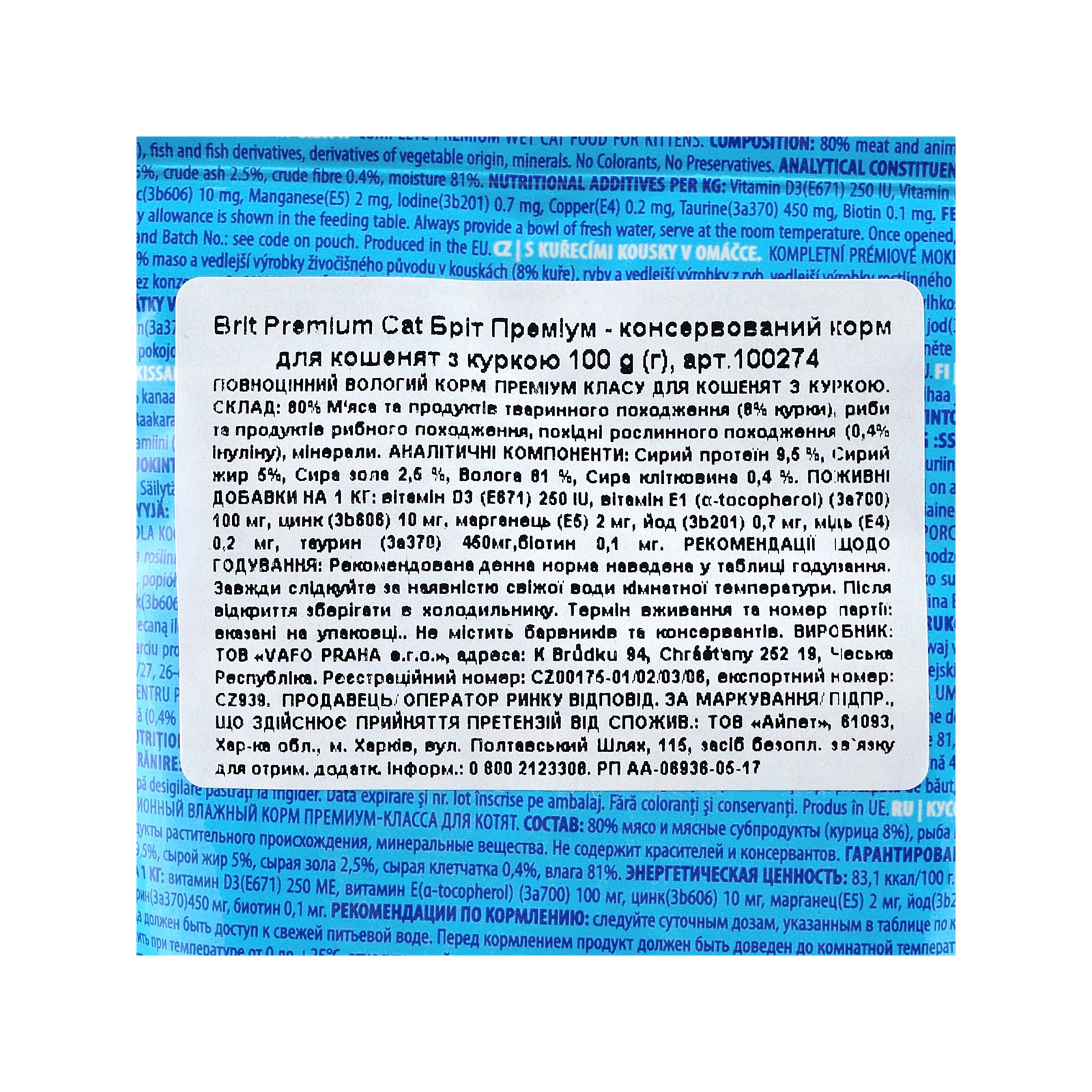 Brit Premium Chicken Chunks for Kitten – повноцінний вологий корм преміумкласу для кошенят.