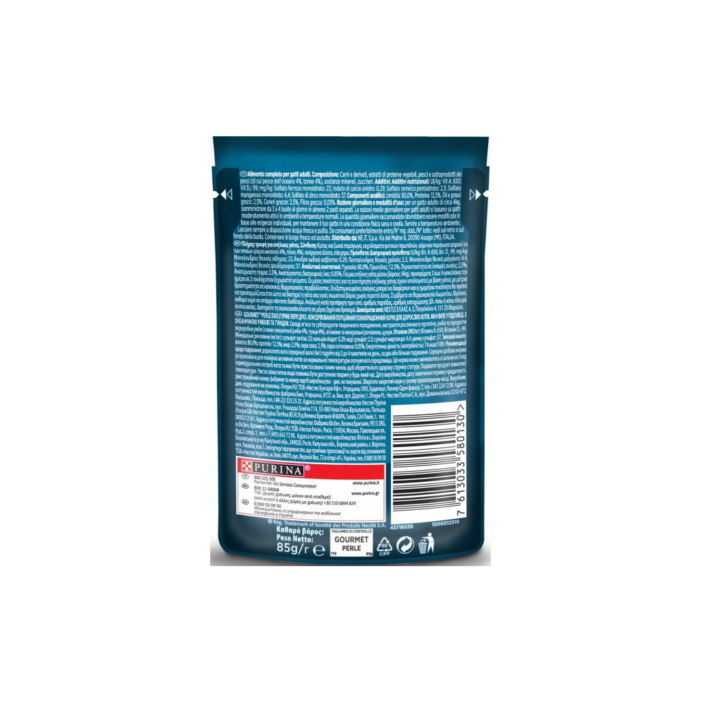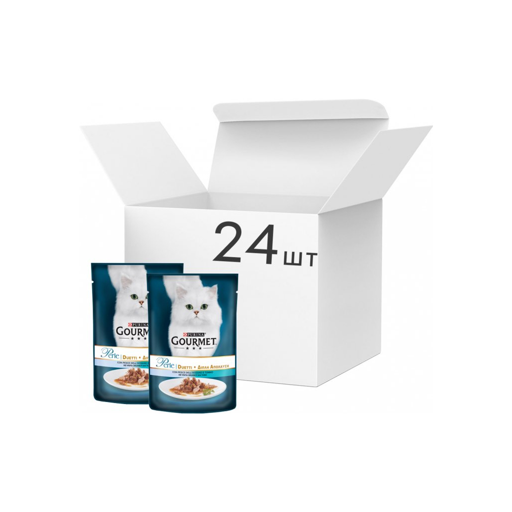 Вологий корм для кішок Purina Gourmet Perle Duo. З океанічною рибою і тунцем в підливі 85г (7613033580130)