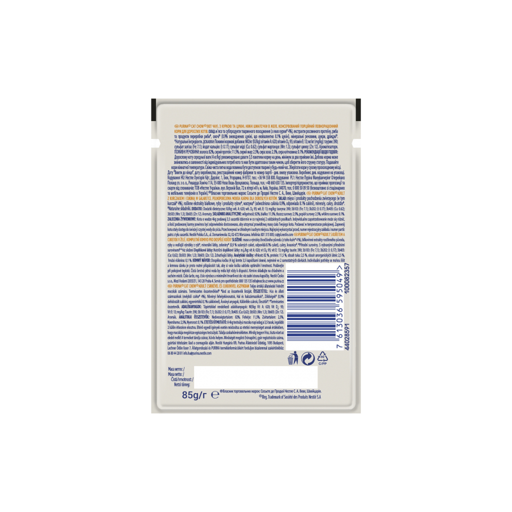 Вологий корм для кішок Purina Cat Chow Adult з куркою і кабачками в желе 85г (7613036595049)