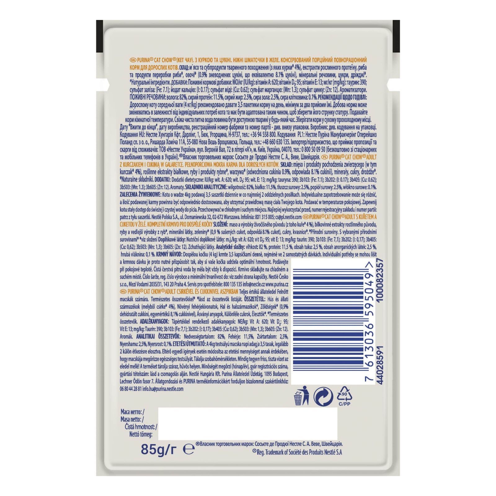 Вологий корм для кішок Purina Cat Chow Adult з куркою і кабачками 5х85г (7613036938501)