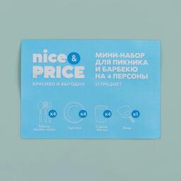 Мини-набор для пикника и барбекю на 4 персоны + подарок, цвет МИКС