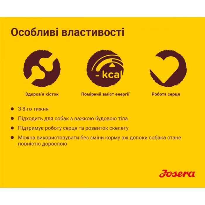 Josera Kids — це ідеальне харчування для вашого чотирилапого друга упродовж усього його шляху від грайливого цуценяти, починаючи з 8-тижневого віку, до повноцінного дорослого собаки. Корм розроблений фахівцями для цуценят і молодих собак середніх і великих порід.