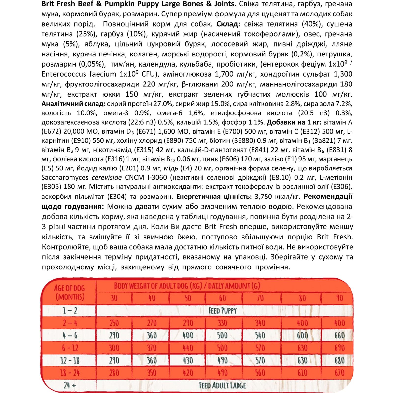 Brit Fresh Beef Pumpkin Puppy Large - сухий, повнораціонний, натуральний корм супер- преміум класу з яловичиною і гарбузом для цуценят великих порід. Корм збалансований, він містить багату корисними речовинами гречку, буряк (клітковина), розмарин і інші корисні інгредієнти, вітаміни і мінерали.