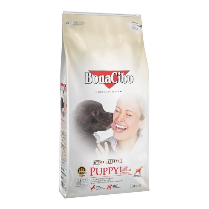 BonaCibo Puppy High Energy розроблений з оптимальним балансом протеїнів і жирів для забезпечення здорового росту й ідеального обміну речовин упродовж усього життя. Оптимальний баланс мінералів також забезпечує правильний ріст і розвиток кісток.