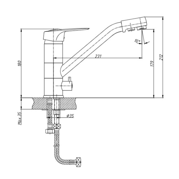 - Высота смесителя (см.) 21.2