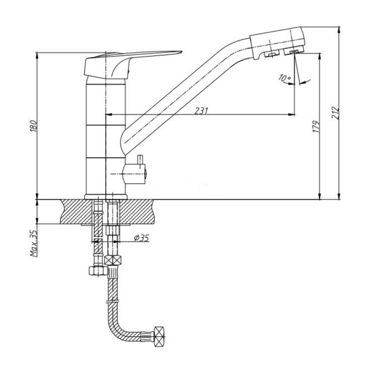 - Высота излива (см.) 17.9